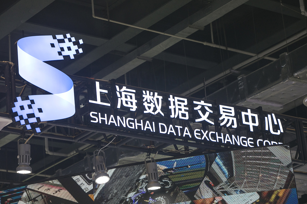 The logo of Shanghai Data Exchange Corp is seen at an expo in Shanghai on July 9, 2021. [Photo/VCG]